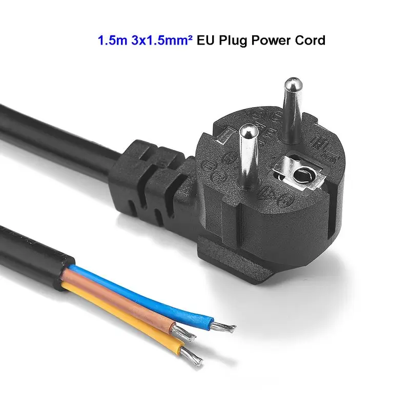 EU Power Supply Cable 1.5m 0.75mm2 Pigtail Rewired Cable Schuko CEE 7/7 Power Cord For Electrical Sockets LED Floodlight Vacuum